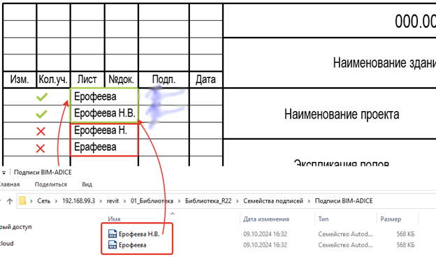 4. Все семейства подписей настраиваются заранее BIM-отделом. Для создания семейства вам необходимо скинут в BIM-отдел вашу подпись в формате .dwg, в котором соблюдены следующие условия: