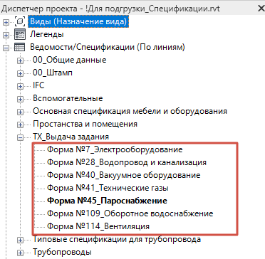 5. В проект подгружаются формы для передачи задания. Для этого в том же окне ревита, где открыт рабочий проект, открывается проект: